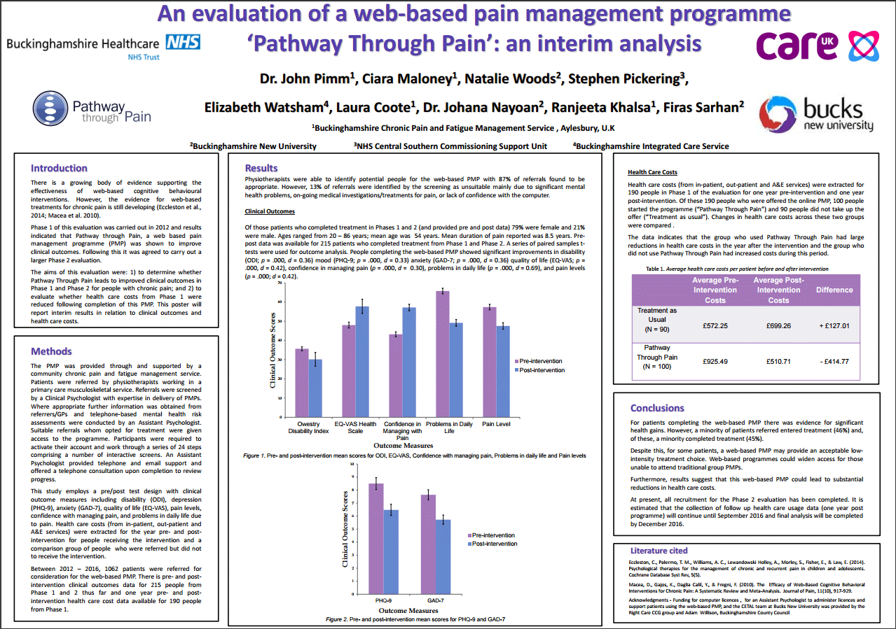From GP Surgeries and Pain Clinics to IAPT and Community Health Services, patients are offered the Pathway through Pain online PMP in conjunction with their existing pain pathways or as a standalone intervention. Academic and clinical research studies form leading institutions show the online Pathway reduces healthcare costs and the work burden on clinical teams in addition to significantly improving patient outcomes.